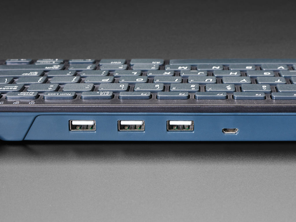 The official Raspberry Pi keyboard and hub is a standard 79-key (78-key US) keyboard that includes an additional three USB 2.0 type A ports to power other peripherals.