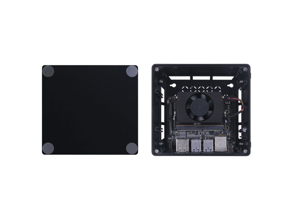 With an overall dimension of 130mm*120mm*50mm, it is only around 1/10 of the size of an ordinary computer case which makes it possible to fit in edge AI scenarios. The back screw holes allow you to hang the product as you need. We also provide other editions case like blue, silver and silver mental, whose stackable structure allows you to stack more middle layers to create rooms very easily.