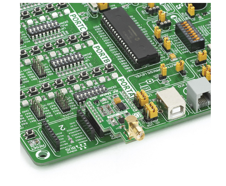 On-board modulesAD8318 - logarithmic detector/controller from Analog Devices MCP3201 - 12-bit ADC with SPI serial interface from Microchip