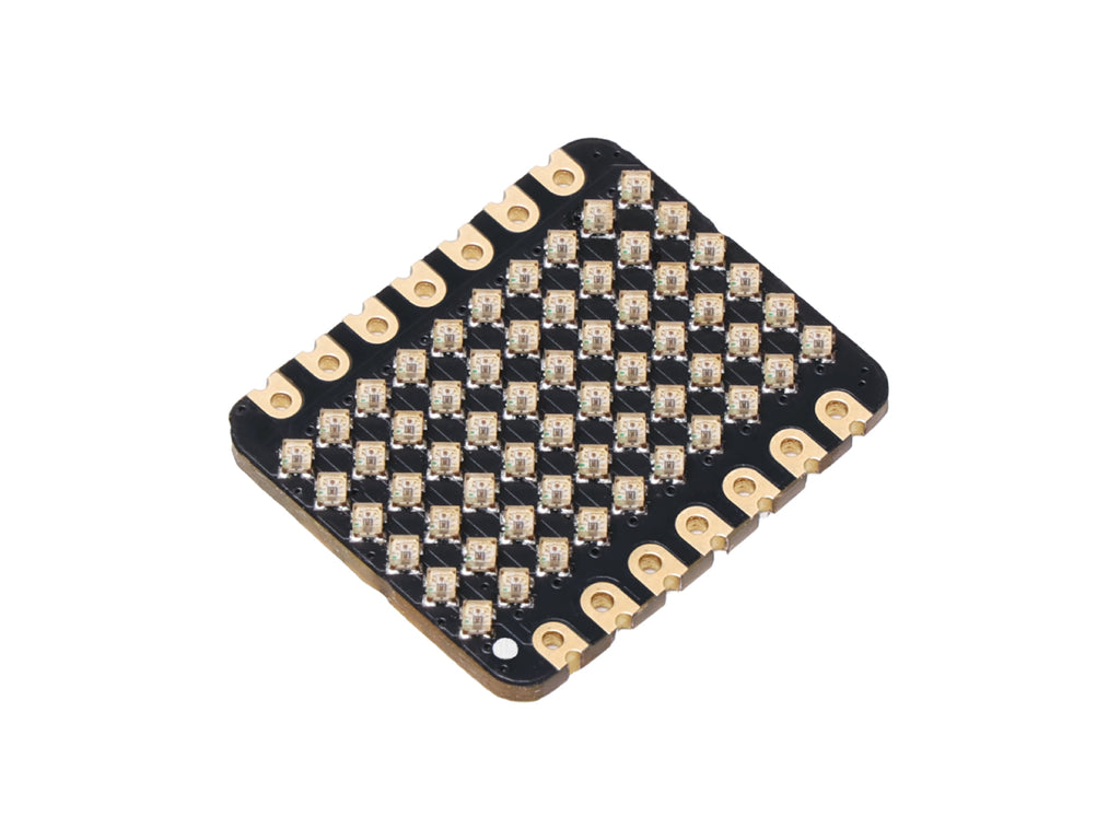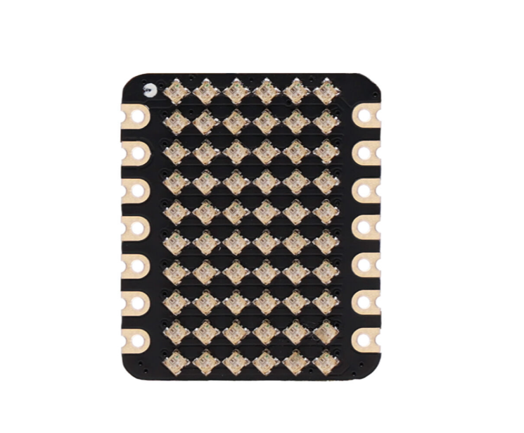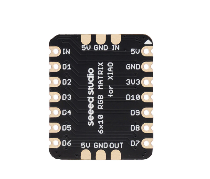 This extension board of 6x10 RGB Matrix designed for Seeed Studio XIAO is the perfect addition to your wearable devices with the XIAO series. This remarkable matrix is designed to bring a vibrant spectrum of colors to your projects. We packed 60 LEDs in a compact size where each one is 1*1mm WS2812B LED. It goes beyond mere aesthetics, empowering you to breathe life into your creative visions. Whether you're working on an interactive art piece, developing a dynamic notification system, or simply looking to add a dazzling touch to your creations, this matrix serves as your ultimate canvas. Seamlessly integrated with the XIAO main controller and QT Py for adafruit, featuring VCC, GND, and DIN solder pads, it offers unparalleled adaptability for a wide range of scenarios.