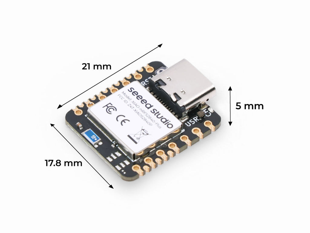• Classic XIAO Form Factor: 21 x 17.8mm design with 2.54mm pin headers, single-sided mounting for wearables and space-constrained projects