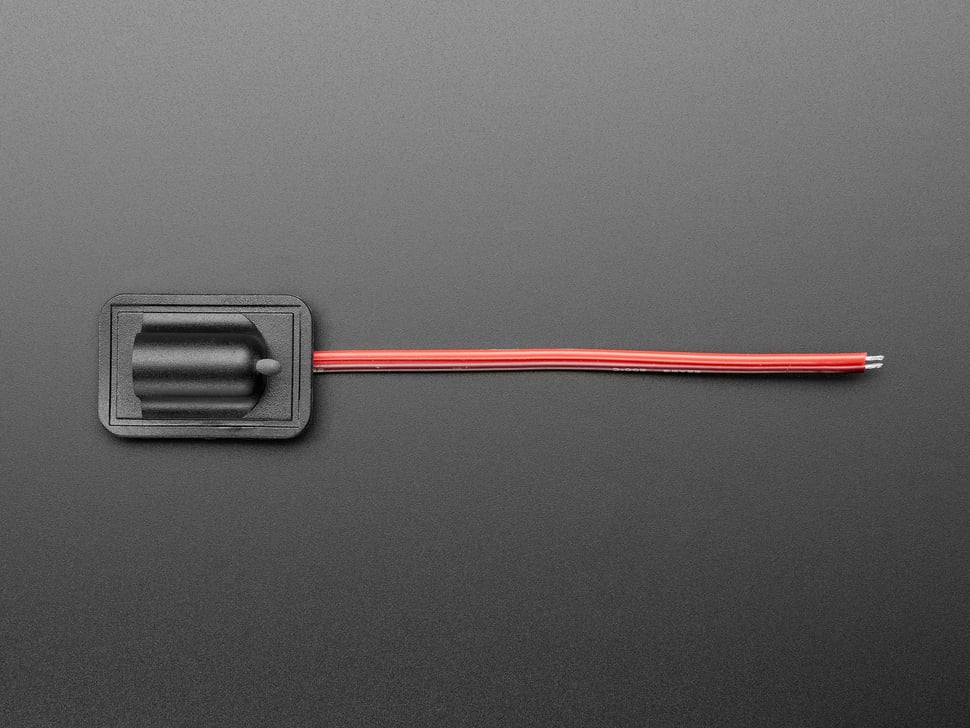 If you'd like to connect a DC Jack to your favorite garment to make a fun wearable tech project, then try out the array of sewable connectors we have. This is a 5.5/2.1mm DC Jack that is oriented in a horizontal position to the sewable base it's house on with red and black wires running through the bottom.