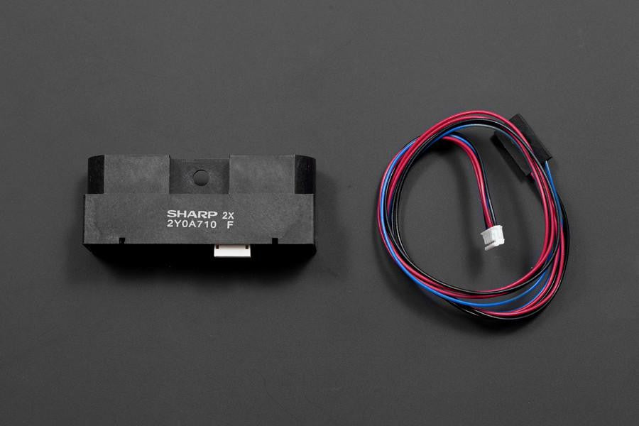 The GP2Y0A710K infrared sensor is a new version of GP2Y0A700K which takes a continuous distance reading and reports the distance as an analog voltage with a distance range of 1m (39.3") to 5.5m (216.5").
