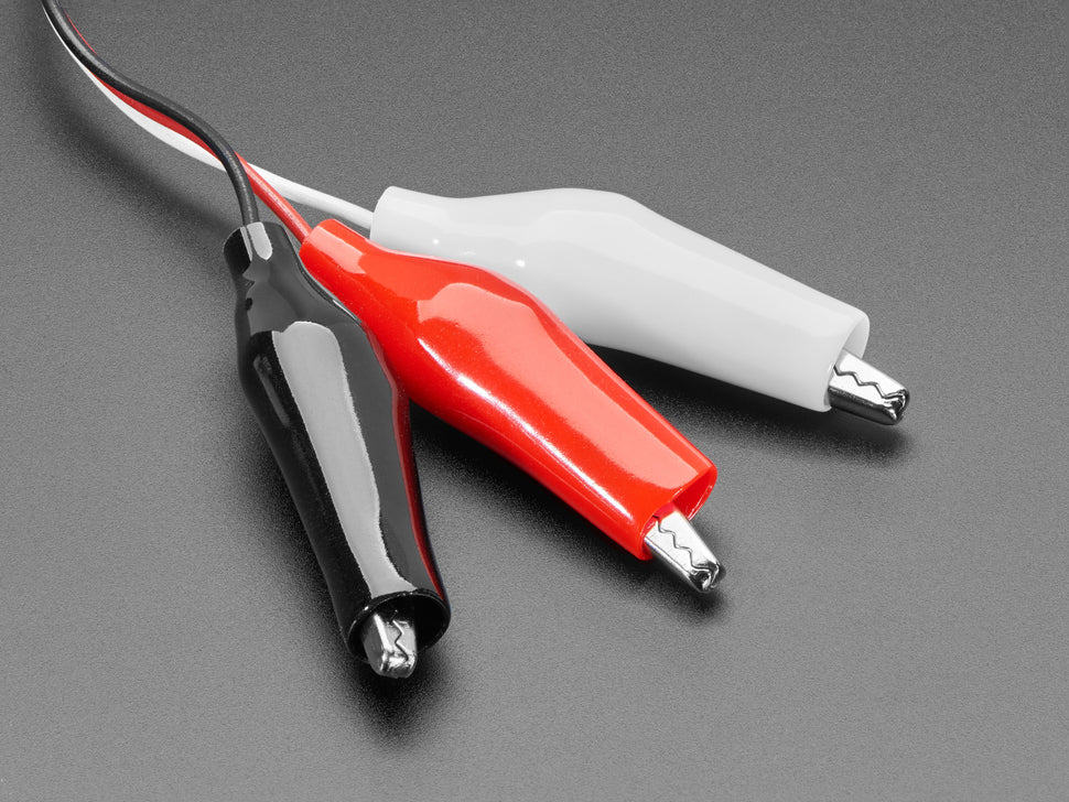 Stretch out your servo connections with this flexible servo to alligator clip cable. It has a 3-pin shrouded "male" connection to plug your servo into and then, 17cm later, three alligator clips - it even keeps the common red/black/white color coding for power/ground/signal as you'd expect!