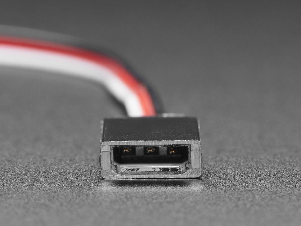 Stretch out your servo connections with this flexible servo to premium male header jumper cable. It has a 3-pin shrouded "male" connector to plug the servo into and then, 17cm later, three separated jumper wire ends that plug into a breadboard or some header.