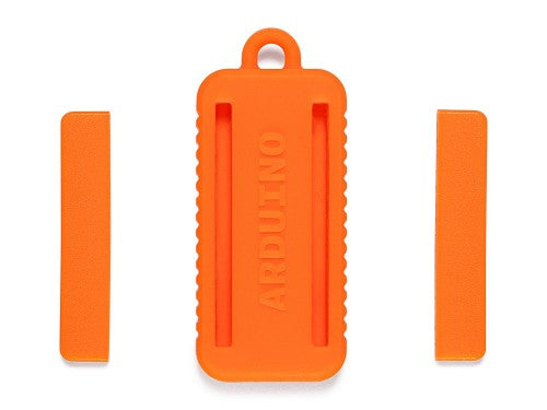 The two pin sockets make it easy to handle the board with mounted headers, and insulate your board from potential damage or short circuits, when using the board onto conductive surfaces. The Arduino Nano 33 BLE Sense Silicone Case makes your tiny Nano board even more portable, thanks to its keyholder loop.