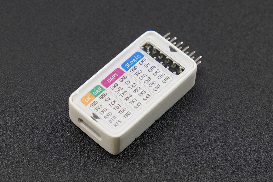 The SLogic Combo 8 is a versatile development tool that integrates the functionalities of a logic analyzer, CKLink debugger, DAP-Link debugger, and UART module (USB2UART). It allows for arbitrary switching between these functions via buttons. This 4-in-1 tool offers a maximum sampling rate of 80 MHz, supports up to 8 channels, and is compatible with multiple platforms. Despite its compact form factor, it provides a wide range of over 130 analysis protocols.