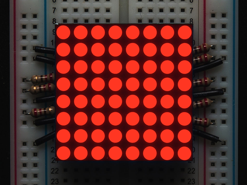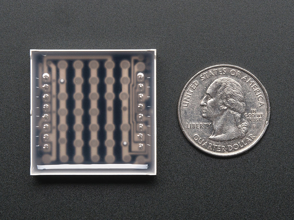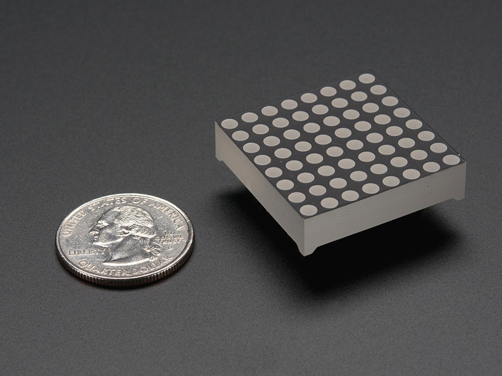 Make a scrolling sign, or a small video display with this 8x8 gridded red LED matrix. Only 1.2" on a side, it is quite visible but not so large it won't plug into a breadboard! There are 16 pins on the side, 8 on each, with 0.1" spacing so you can easily plug it into a breadboard with one row on each side for wiring it up.