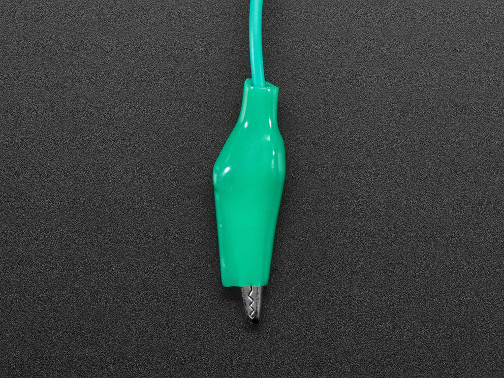 Connect this to that without soldering using these mini alligator clip test leads. 15" cables with alligator clip on each end in six colors. Strong and grippy, these always come in handy! We often use these in conjunction with a multimeter, so we don't have to hold the probes in place, or with wearable projects, or for quick prototyping with big-pad circuit boards like microbit & Circuit Playground.