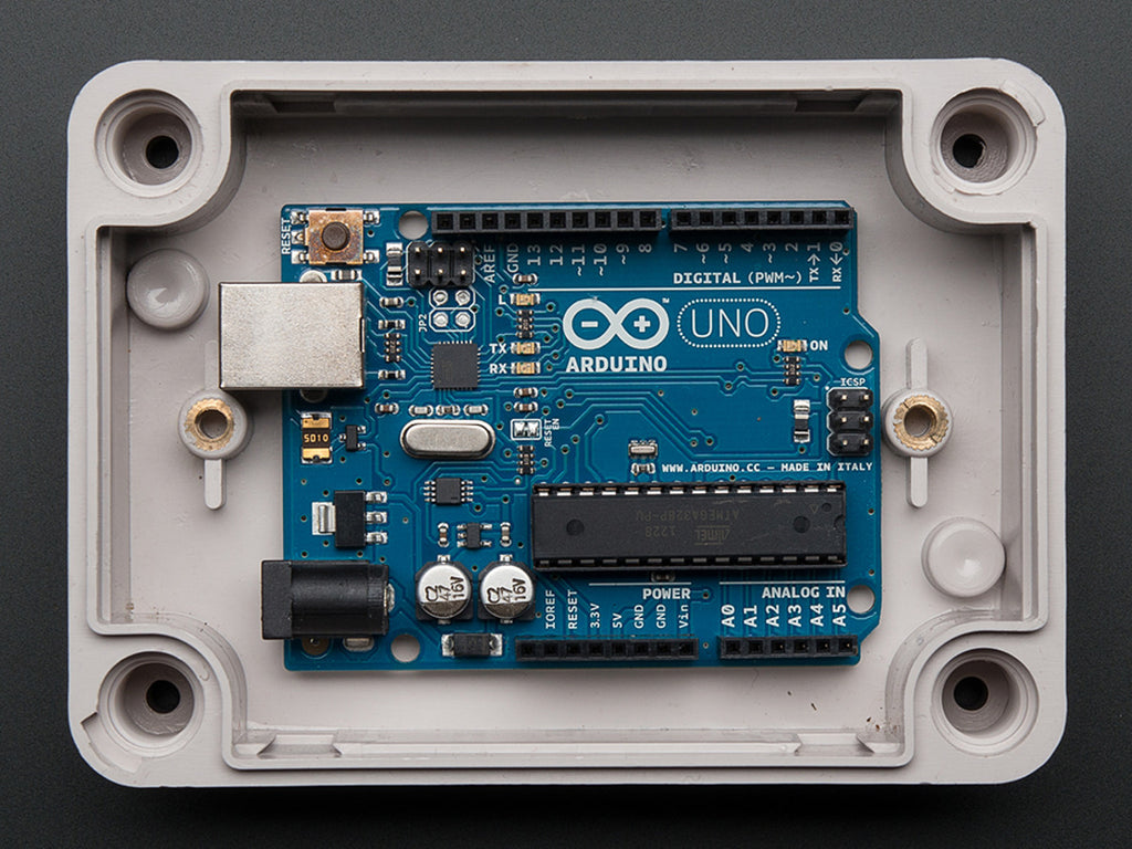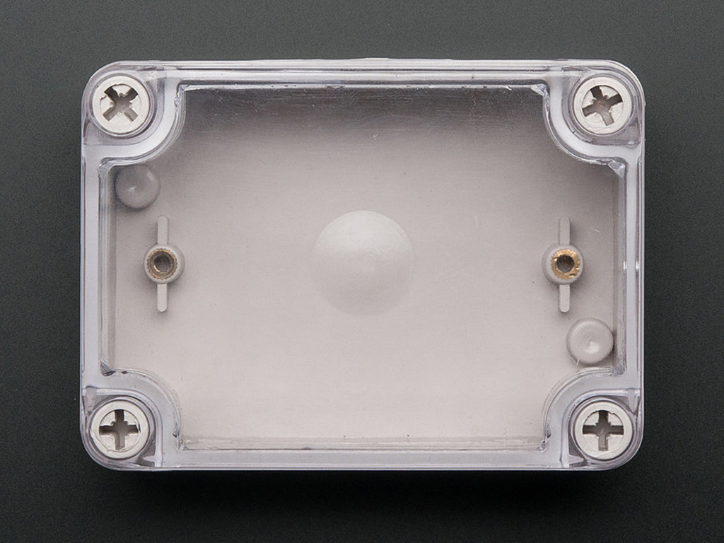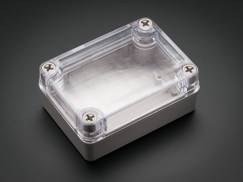 Store your project safe and sound in this nice weatherproof box with a clear top. We picked up this box because we like the machinable ABS plastic body and tough clear polycarbonate cover, the built in weatherproof gasket seal, and the easy-open screws that can be taken apart as many times as you wish without worrying about cracking or stripping.