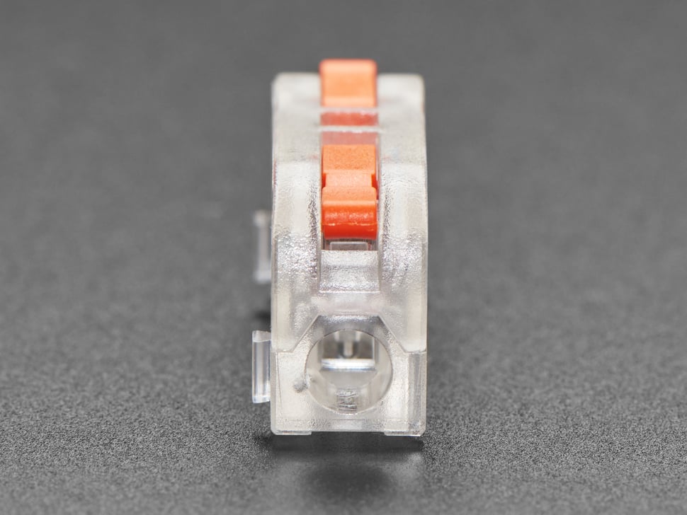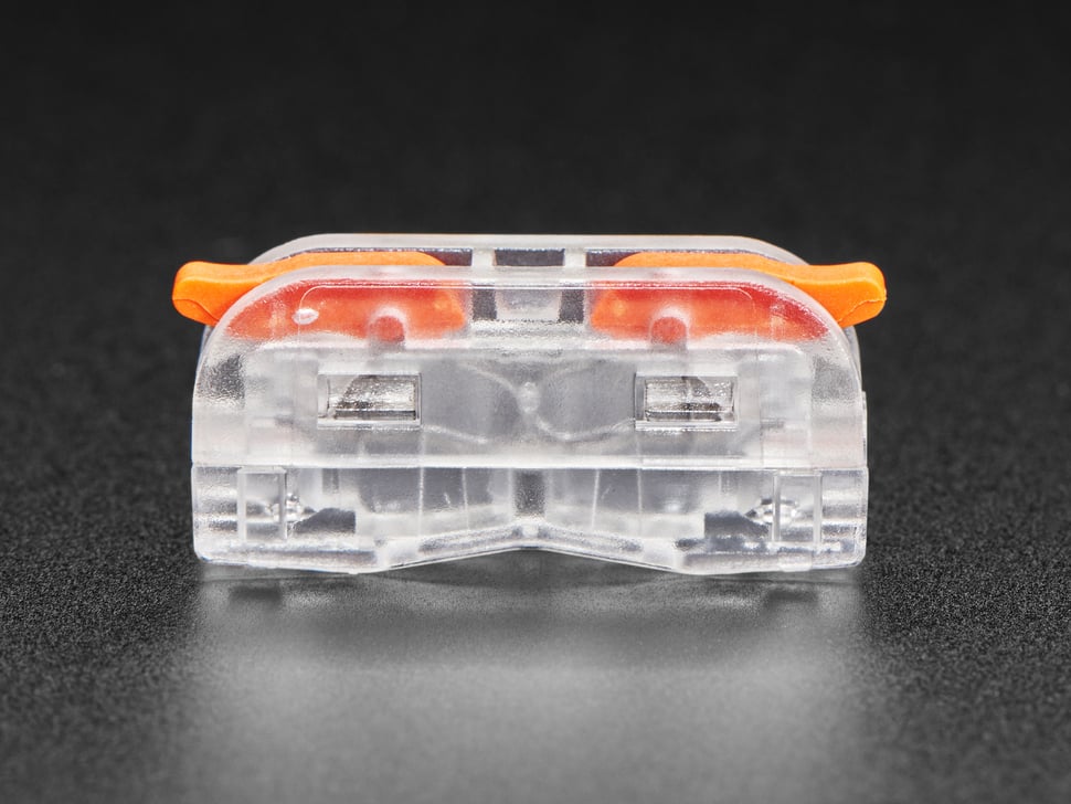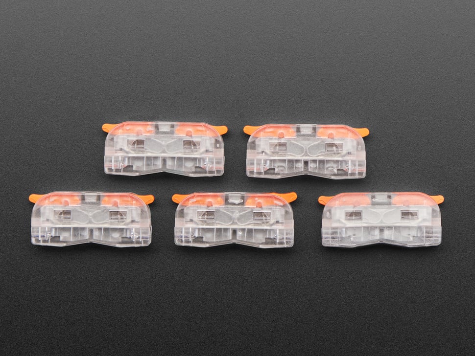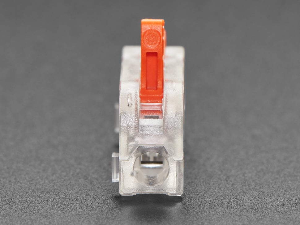 Each block connector has a metal block inside and levers that snap open and close to bind stranded/solid-core wire from 12 AWG down to 24 AWG. No screwdrivers or crimpers required, making them super handy for free wiring. Each block is marked to handle up to 32A at 250V, but we haven't tested them at such high power uses - we're selling them for maker projects that would be 10A at 24V max.