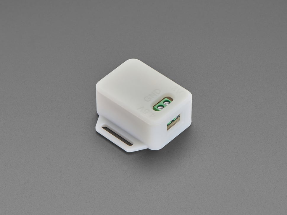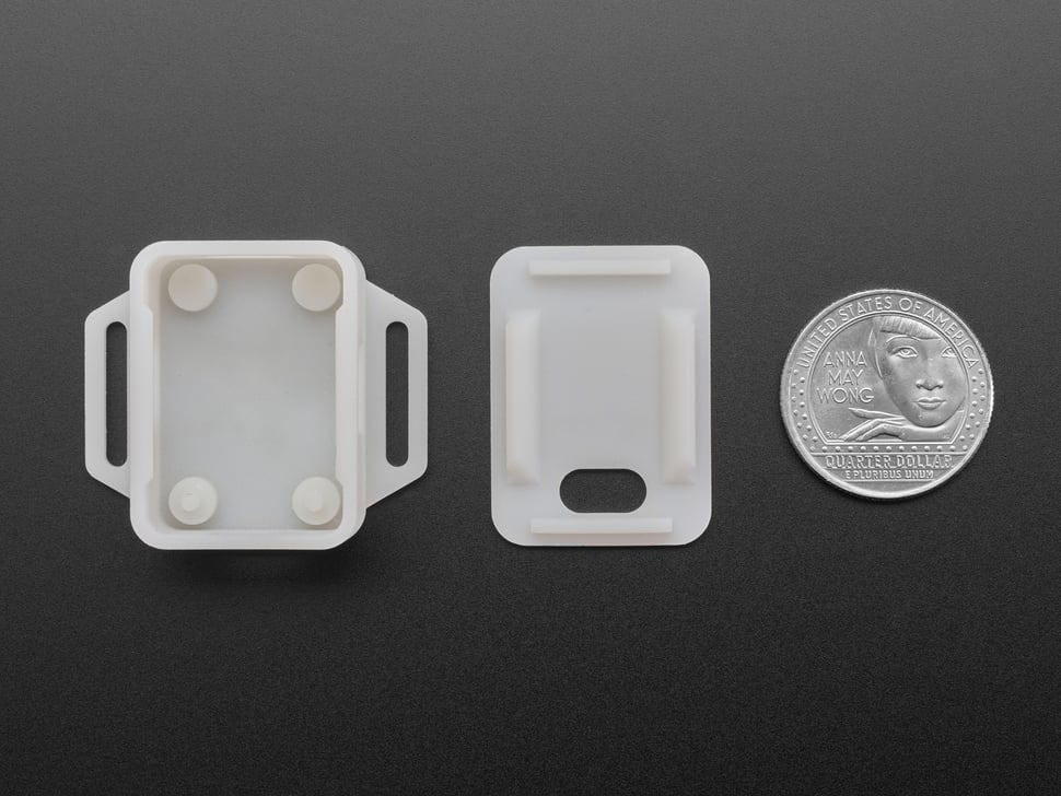 It's made of translucent milky white plastic with an SLA process, so there are no lines or blobbiness to the print. Since its not completely opaque you can see the LEDs glowing through. It's also easy to machine and cut into if you want to drill a hole to access the breakout pads.