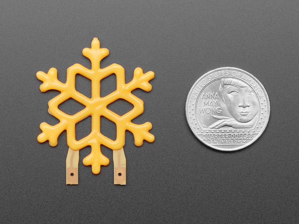 This glowy snowflake is made out of COB (chip on board) LEDs, often seen in 'Edison-like' LED bulbs, arranged in different patterns to give a bright, warm lighting effect. They're made of dozens of micro LED diodes that are bonded together on a stiff metal backing and then coated in silicone for protection. Even though the LEDs are only placed on one side, the PCB substrate is very thin so it glows out the back too (although a little dimmer)