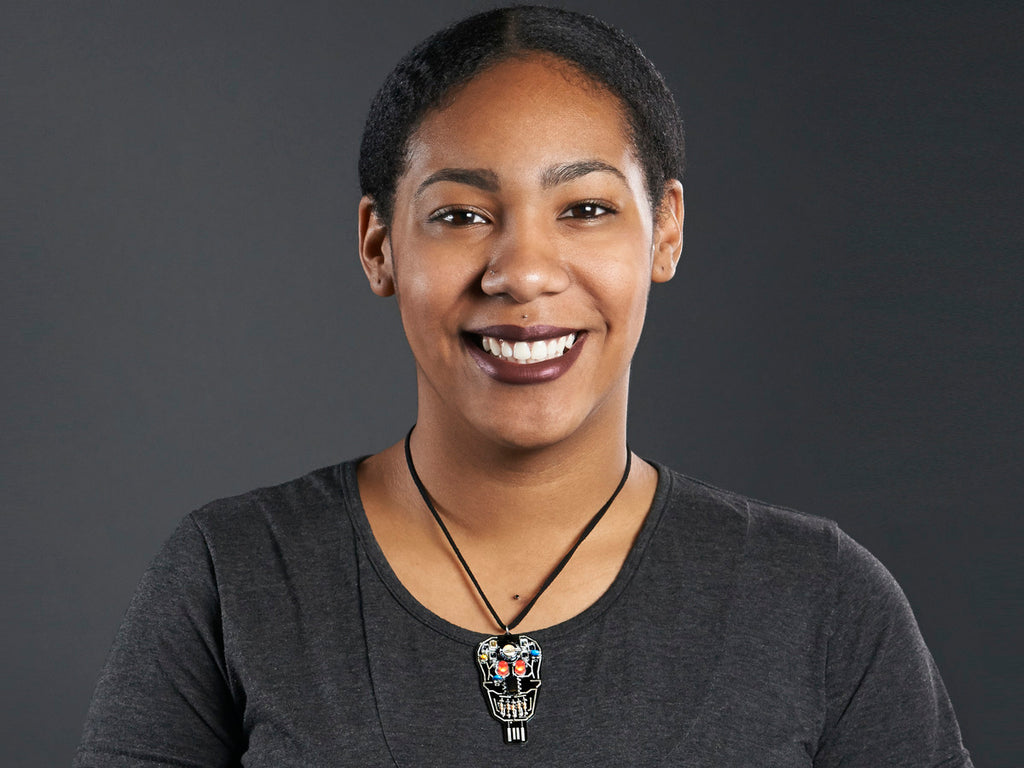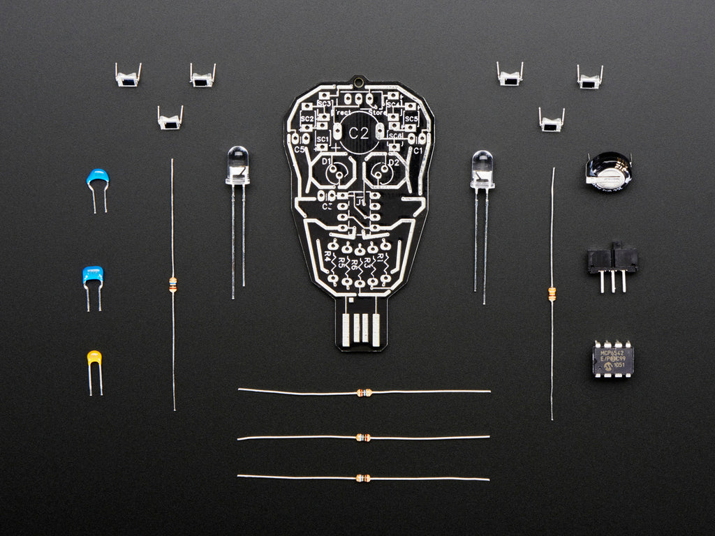 Scary. Solar. Skull-y. The Solar Powered SKULL Blinky LED Pendant by Lumen Electronic Jewelry is an awesome new kit where, with a little soldering, you can make a battery-less blinking skull. That's right, there's no coin battery! Instead, a 1 Farad super capacitor is used to store energy. It takes around an hour to make and, when you finish, you can charge it either with a USB or with the power of the sun.
