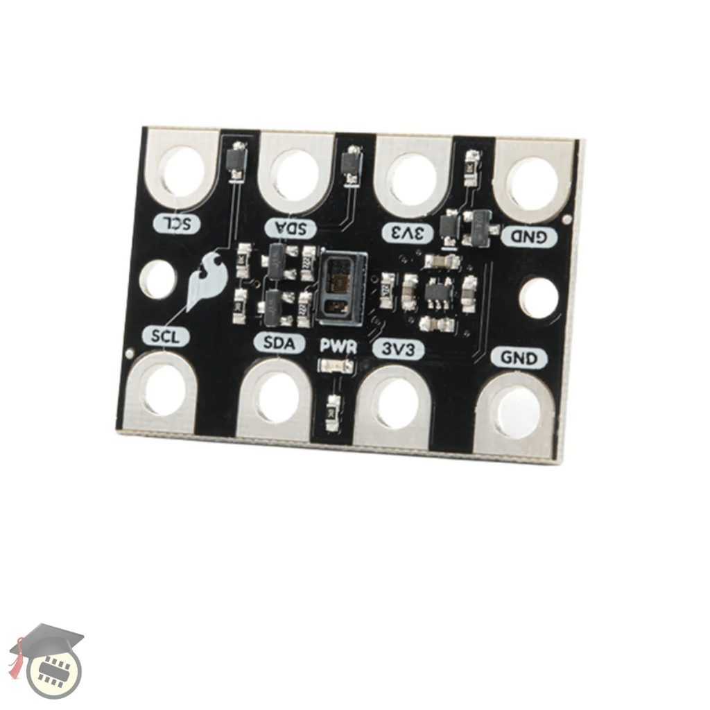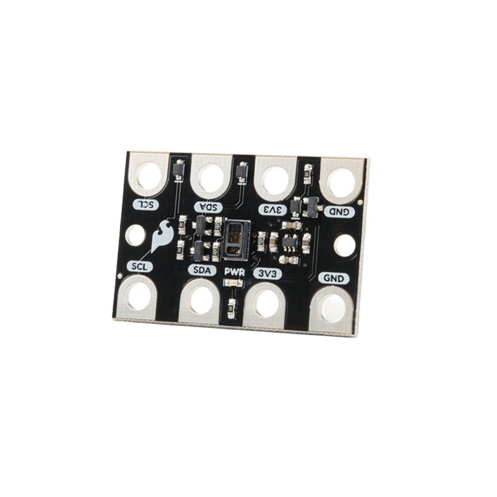 The MAX30102 is a high-sensitivity pulse oximeter and heart-rate sensor that communicates over an I2C bus. The specified operating voltage for the MAX30102 is between 1.7V-2V. For use with the gator:bit (v2) and micro:bit, you should provide 3.3V through the 3V3 and GND pads to keep the logic levels consistent; the 3.3V input is then regulated to 1.8V for the MAX30102.