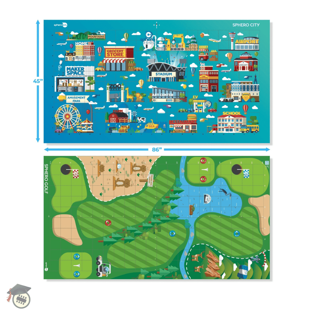Choose Sphero City and Golf Code Mat to tee up your Sphero robot and take a swing while exploring concepts like distance, speed, maths fundamentals, and basic coding or program your robot to navigate around Sphero City using draw, blocks, or text programming.