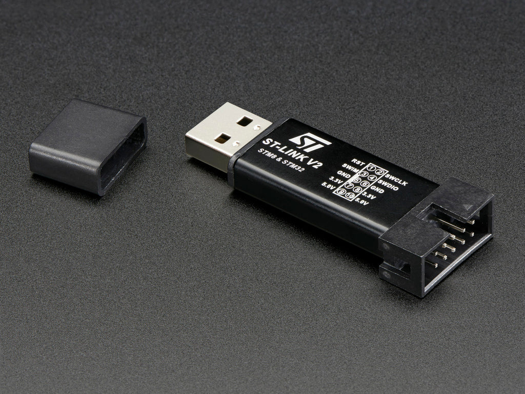 Explore new microcontroller worlds with an ST-Link-Compatible Programmer & Emulator / Debugging dongle. This little USB stick contains a microcontroller with the code for ST's classic programmer/emulator for STM8 and STM32 bit processors. Since STM's are so common, this tool will come in handy whenever you encounter them. You can even get 5V and regulated 3.3V power!