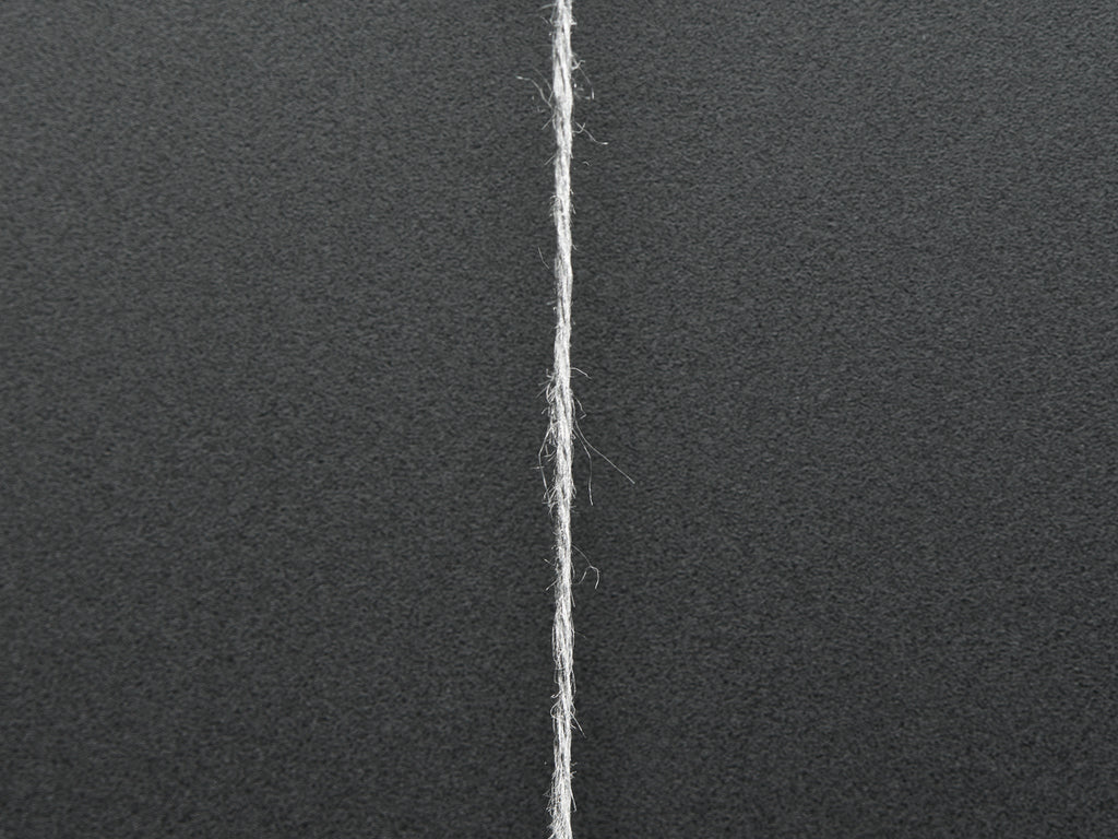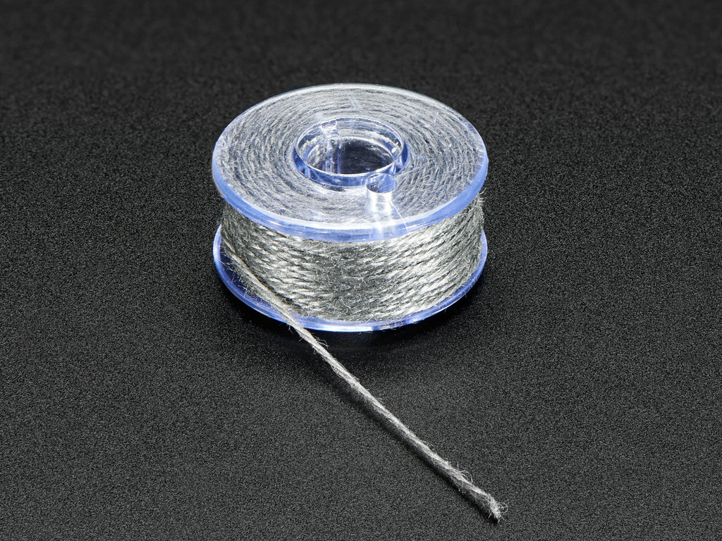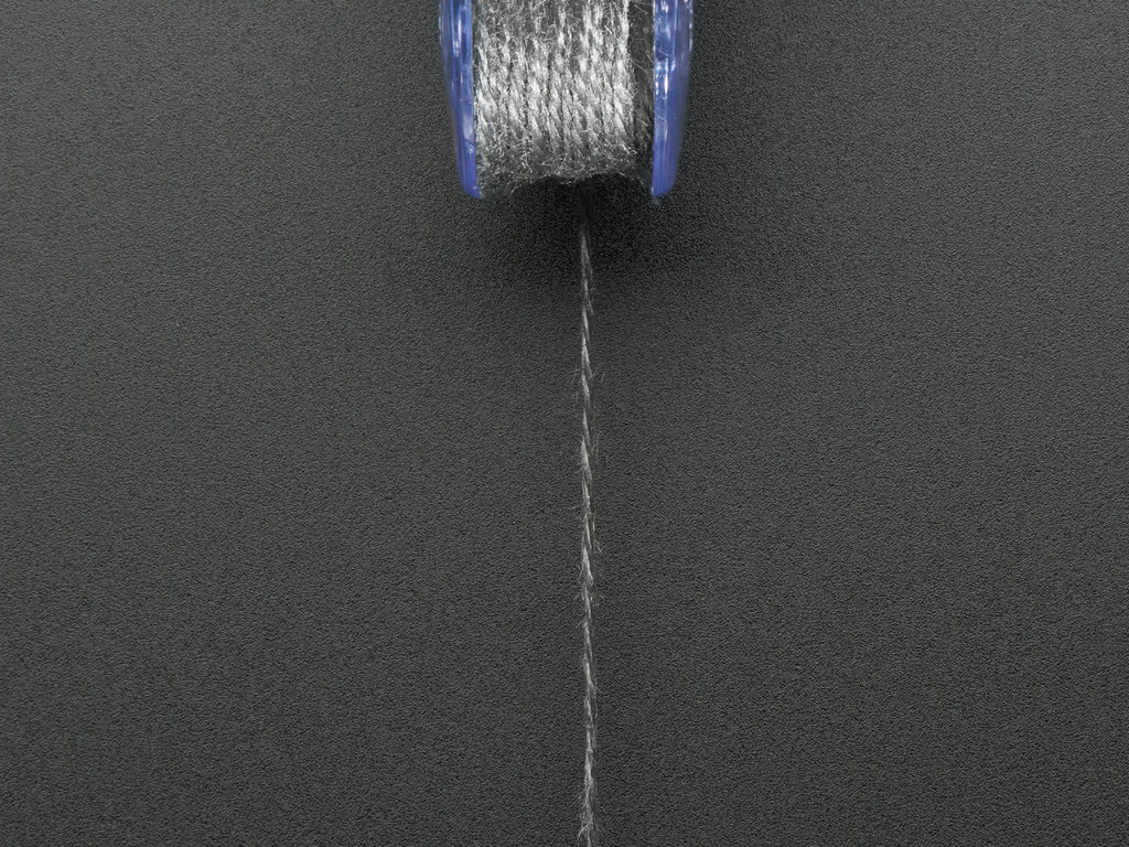 This 316L stainless steel thread falls somewhere between a thick thread and a thin yarn. Most sewing machines wouldn't be happy with this thread since its thick, and it has the 'furry' soft feel of yarn which makes it poor for most e-textiles/wearables projects. However, the high conductivity and softness make it a great thread for making iPhone gloves!
