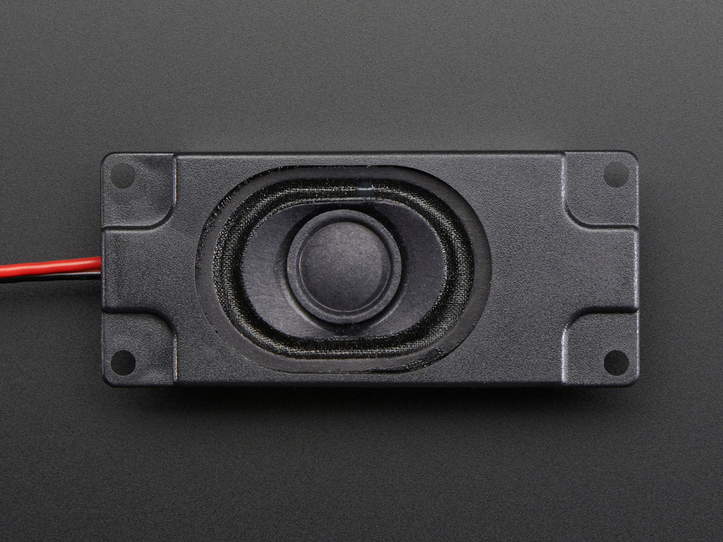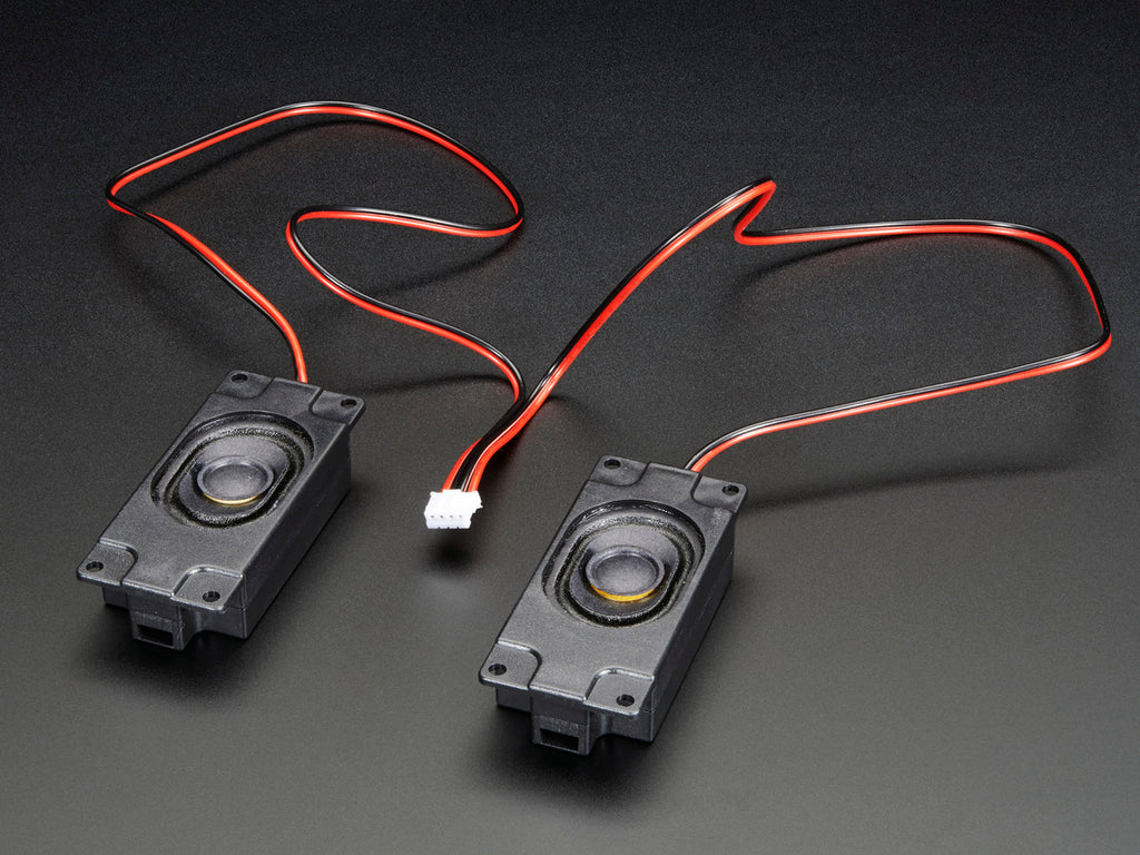 Listen up! This set of two 2.8" x 1.2" speakers are the perfect addition to any audio project where you need 4 ohm impedance and 3W or less of power. We particularly like these speakers as they are small and enclosed for good audio volume and quality. The pair have a handy SPK input cable to add audio to your displays (the connectors are similar to the JST-PH series which is ~2.0mm spacing).