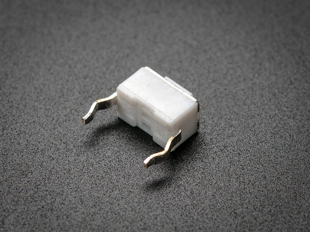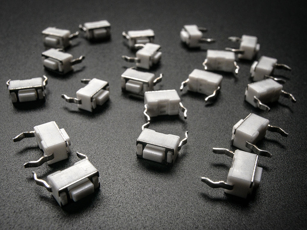 Slim clicky momentary switches are standard input "buttons" on electronic projects. These are half the width of classic 6mm tactile switches so they line up better on a breadboard, just plug them into every-other row. These work best in a PCB but can be used on a solderless breadboard as shown in this tutorial. The two pins are normally open (disconnected) and when the button is pressed they are momentarily closed.
