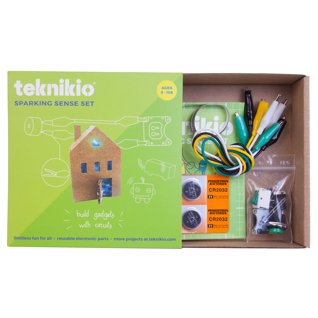 Learn about 5 different mechanical switches and then design your own! There are hundreds of switches in the world but why? Did you know that switches can act as sensors? The sparking sense set has our favorite sensing switches and we walk you through how to build gadgets with each one.