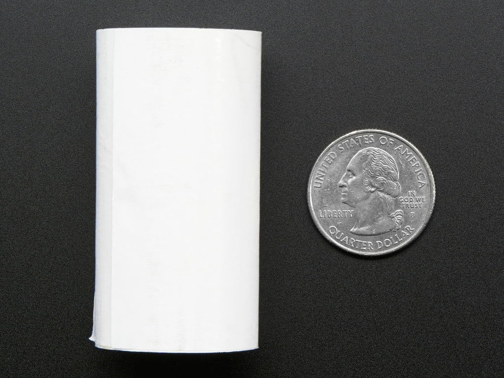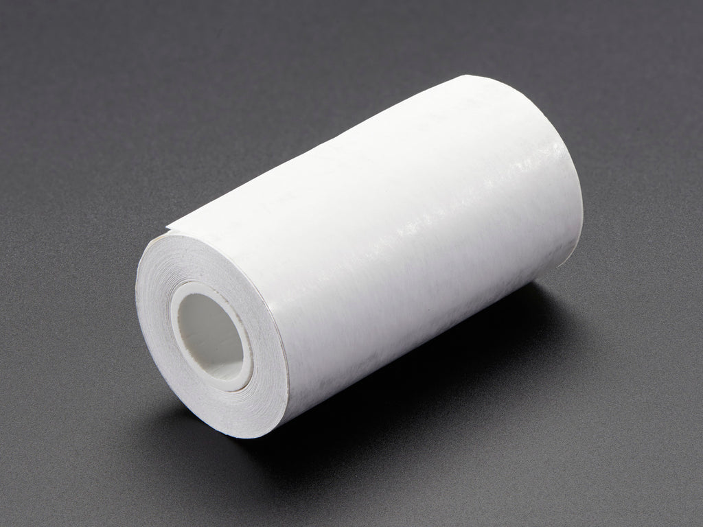 A little roll of thermal paper! This fits very nicely into our Tiny Thermal Receipt Printer. It's ~2.25" wide (about 57mm) and 33 feet long or about 10 meters.