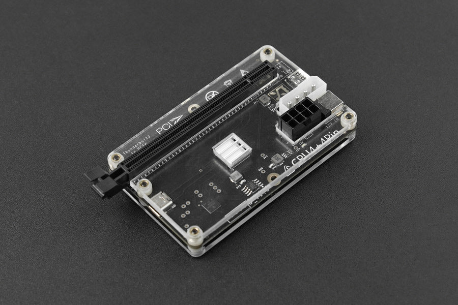 This is a cost-effective Thunderbolt to PCIe docking station specially prepared for LattePanda Sigma users. It is compact in size and has two Type-C interfaces and a PCIe x16 card slot on board. Equipped with the sixth-generation Intel Thunderbolt JHL6340 main control chip, it has excellent anti-interference performance and minimizes signal transmission loss. It is fully compatible with Thunderbolt 3, Thunderbolt 4, and USB4 interfaces. The transmission speed is up to 21.5Gbps, allowing you to enjoy smooth images and operations. The docking station does not require driver installation, plug and play, and can be easily paired with LattePanda Sigma or Laptops. It can be connected to high-performance graphics cards or various high-speed PCIe devices, greatly improving the performance of LattePanda Sigma, Laptops, and Desktops.