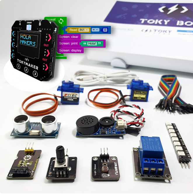 If you are an educator, Tokymaker Starter kit is the best option for your classroom. It contains all you need to integrate technology transversally in your class. It is great for science, music, maths, electronics, coding, mechanics, and much more!