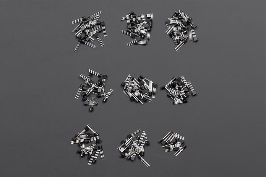 This package includes 17 species transistors in common use.It's convenient for you to make some small designs.You could find a suitable one for your type! A transistor is a semiconductor device used to amplify and switch electronic signals and electrical power.It is composed of semiconductor material with at least three terminals for connection to an external circuit.A voltage or current applied to one pair of the transistor's terminals changes the current through another pair of terminals.Because the controlled (output) power can be higher than the controlling (input) power, a transistor can amplify a signal.Get one pack,convenient for your next project!