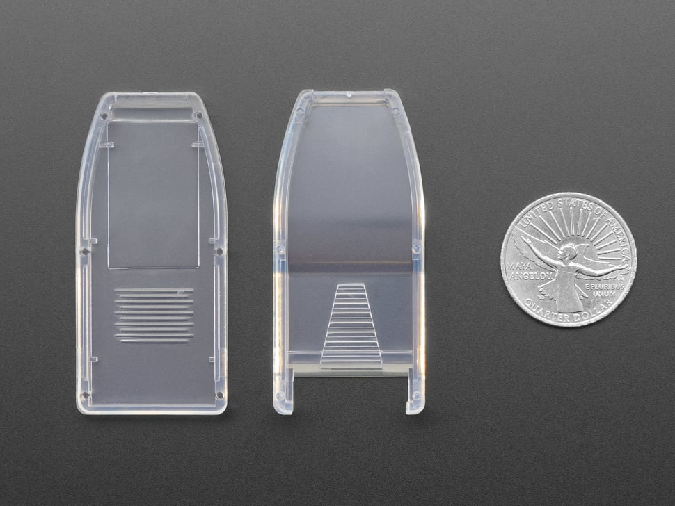 This case seems to be designed for USB to RS-485 adapter kinda like this one. It's made of clear translucent plastic, so you can have a small TFT or OLED or LEDs. There's two pieces that snap over the PCB to capture it in place.