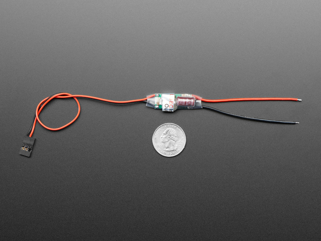 Your power supply problems just got SOLVED! This little circuit board may look tiny but inside is a high efficiency DC/DC step-down converter which can output up to 3 Amp at 5V without the need of any heat-sink or forced cooling. (It does get a bit toasty at 3A though) UBEC stands for "universal battery eliminator circuit" and this UBEC is designed to replace a 5V supply in RC planes and 'copters but its also great for any kind of microcontroller or electronics project that runs off of 5V. We tried a half dozen different 'BECs and found this one to be the best in terms of range and stability. You can check the technical tab for the analysis of input/output range and current draw.