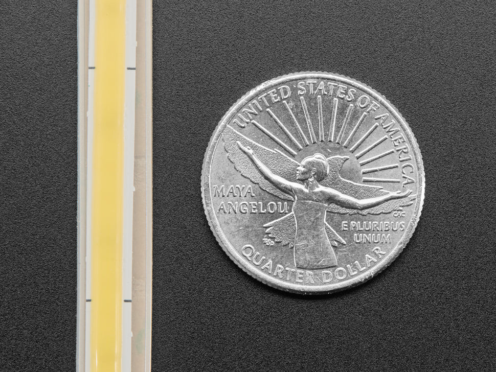 As experts in the field, we at Adafruit are always seeking innovative and unique sources of light. These 'chip on board' ultra-flexible white LED Strips with 320 SMT LEDs per meter caught our attention, as they are closely arranged and covered in a thin layer of silicone epoxy. They have a similar appearance to neon or incandescent tubing, or even high-quality EL wire, but without the costs associated with transformers, glass, or inert gasses. The strip measures only 5mm in width, while the casing can easily be removed, measuring 8mm in width.