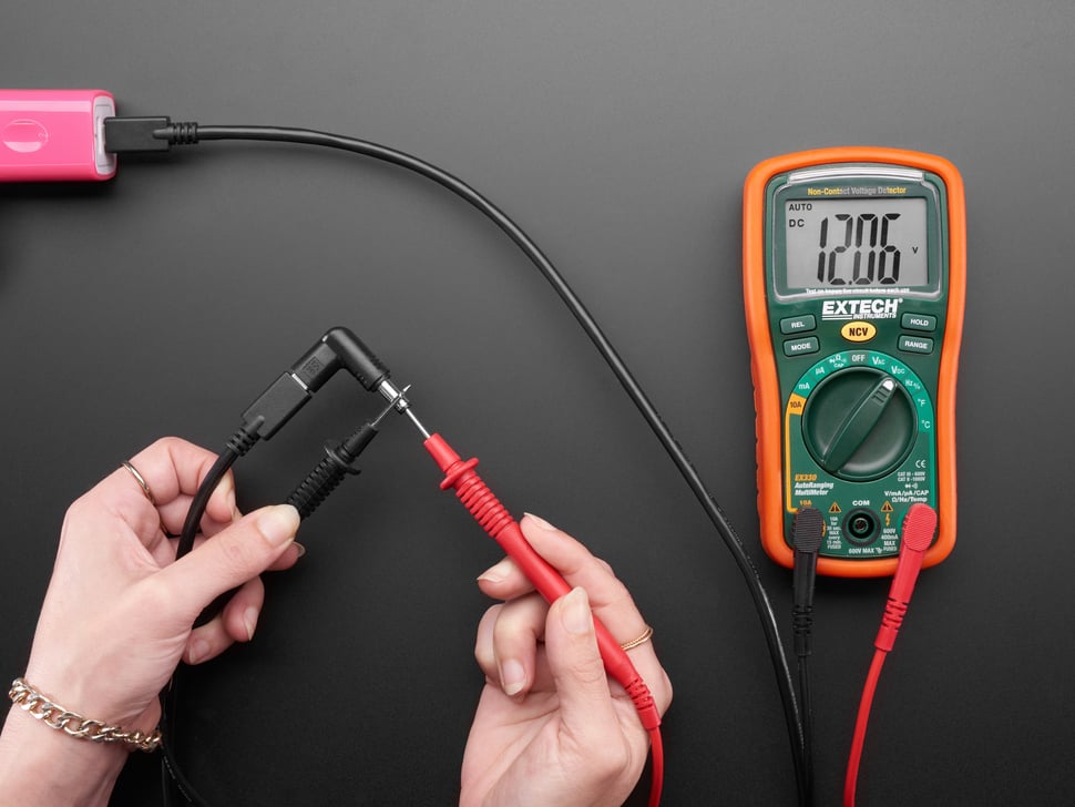 Works great with any device or cable with 5.5mm / 2.1mm DC barrel socket. Since USB C is reversible you can flip it for a left angle or right angle. You'll get 12V DC output, at up to 3A (or whatever the power adapter can do)