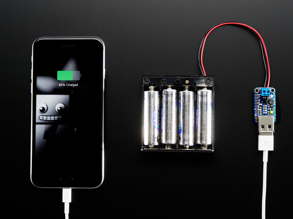 Great for powering your robot, Arduino project, single-board-computer such as Raspberry Pi or BeagleBone from a wide variety of inputs. We especially like it for use with 4 x AA batteries, which can range from 7V for fresh alkalines down to 4V for nearly-dead rechargeables. If you're only going to be using voltages higher than 6V, we recommend our UBEC step-down. If you're only going to be using voltages under 5V, check out the PowerBoost 500 which has much better boosting capability