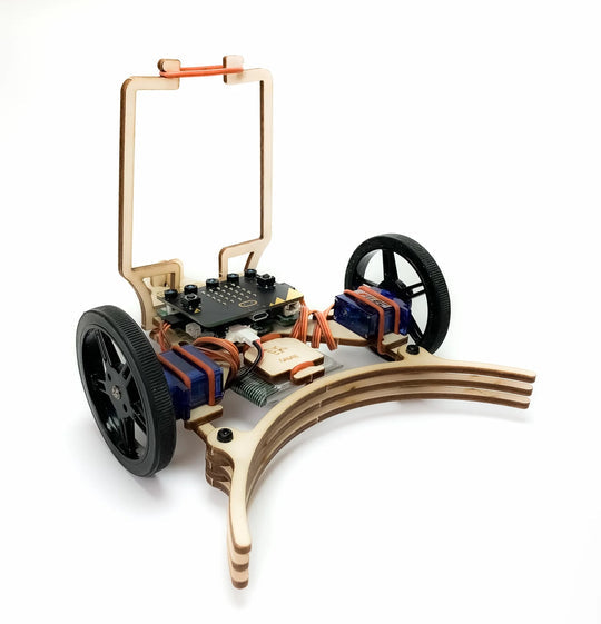 Wheel:bit is a cost-effective, versatile 3-wheeled car with the ability to become a drawing machine, soccer-playing robot, or custom-designed vehicle. This car is suited for autonomous operation or remote control via another micro:bit. Unleash your creative side and transform Wheel:bit into a dinosaur or a vehicle of your own design.