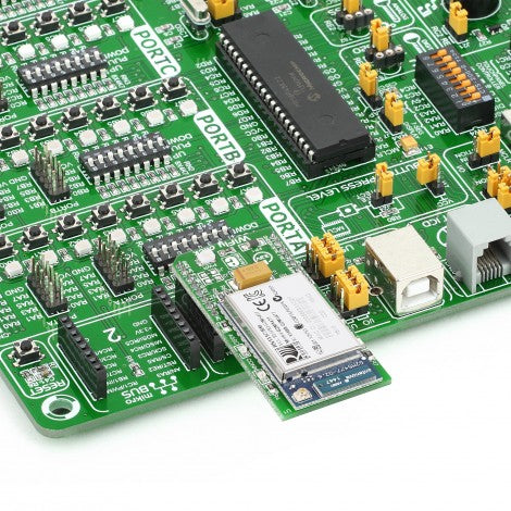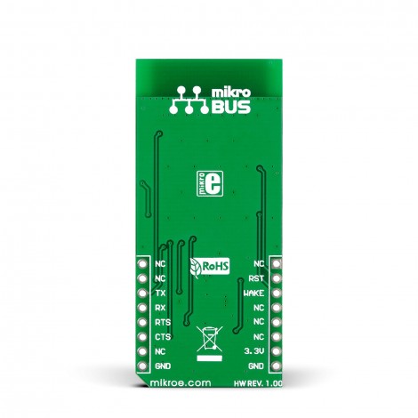 Type WiFi Applications Can be used for IoT, data logging, telemetry, remote equipment monitoring, or mobile wireless applications such as asset monitoring, GPS tracking, battery sensors, and more On-board modules RN-131 - standalone embedded wireless 802.11b/g/n networking module from Microchip Key Features Qualified 2.4-GHz IEEE 802.11 b/g transceiver, onboard ceramic chip antenna plus connector for external antenna, packed with features such as DHCP, UDP, DNS, ARP, ICMP, TCP, HTTP and FTP client, authentication part features WEP-128, WPA-PSK(TKIP), or WPA2-PSK(AES), and more Interface GPIO,UART Compatibility mikroBUS Click board size L (57.15 x 25.4 mm) Input Voltage 3.3V