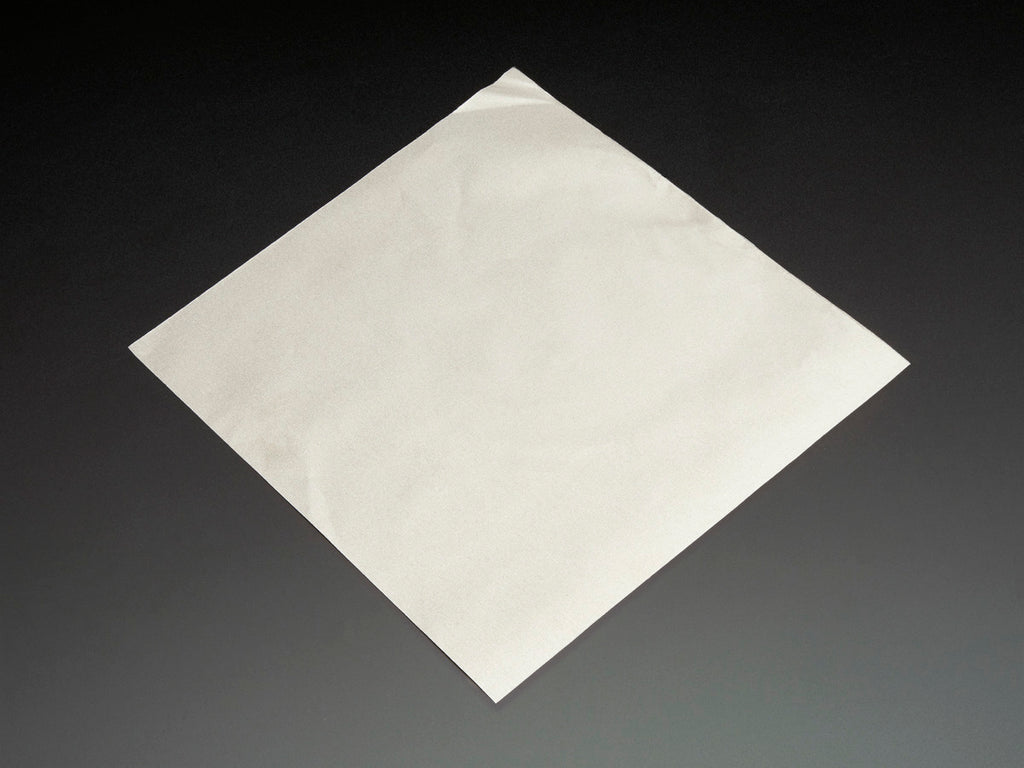 This woven conductive fabric is silver colored and made of Copper+Nickel-plated polyester. Use small pieces for soft switches, plush keypads, capacitive touch sensors, and other textile interfaces. This highly conductive fabric has a resistance of less than 1 ohm per foot in any direction across the textile. Great for use with FLORA.