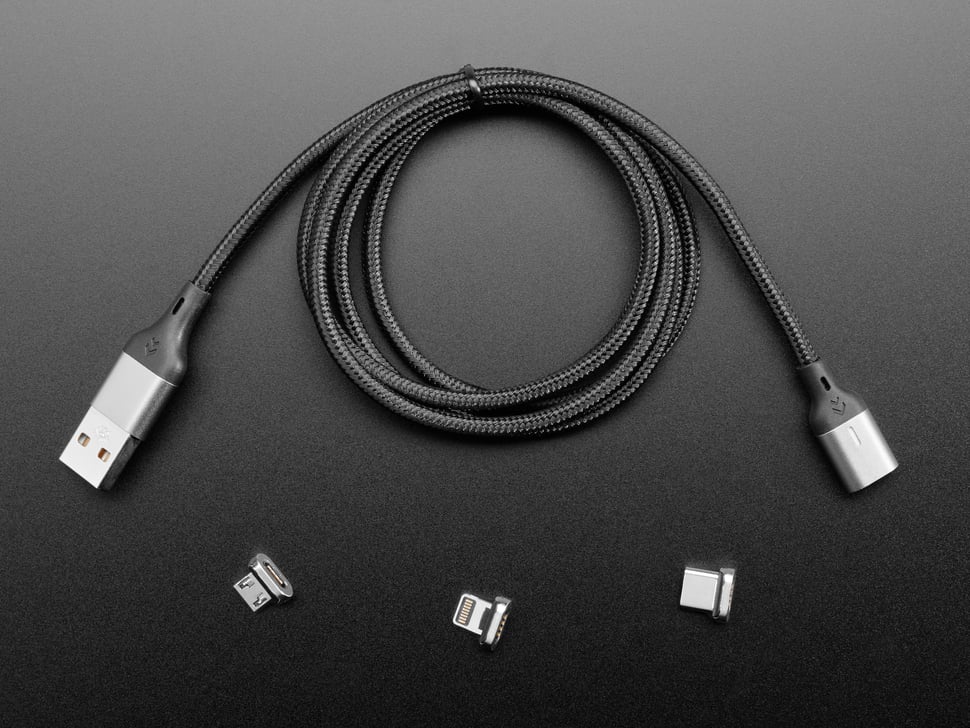 Our latest addition to the collection is this 1-meter-long Black Magnetic USB A with Magnetic Tips for USB C, Lightning / iOS, and USB micro B! It's a luxurious cable that will make managing lots of dev boards or gadgets super easy.