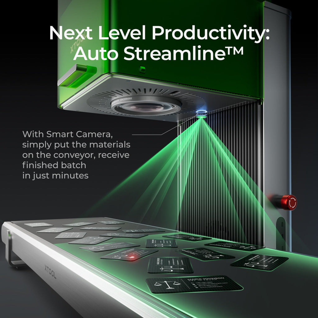Desktop-level conveyor compatible with F1 Ultra, an automated production solution, designed for small business owners