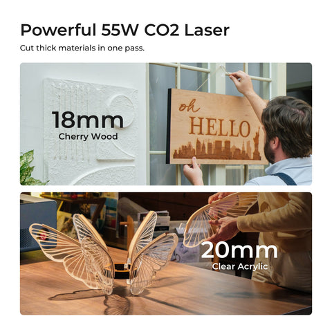 - Best choice of smart CO2 laser cutter: dual cameras, 26*14 inches bed size, auto-passthrough, curved surface engraving, free software XCS.
