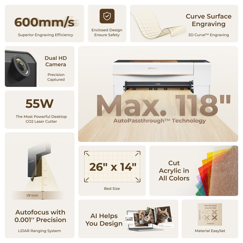 for enhanced performance* *Compared to the Laser Box, the xTool P2S has a 37% increase in output.