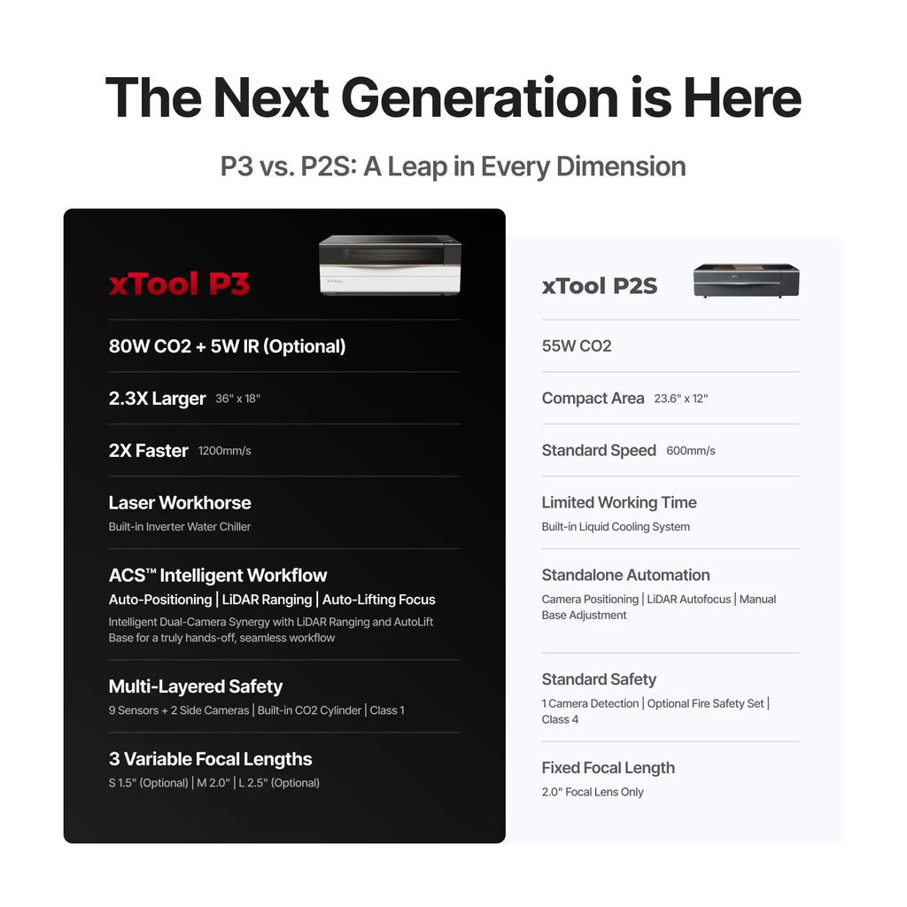 • 36" × 18" Working Area: Our largest workspace yet—2.3x larger than the P2S.