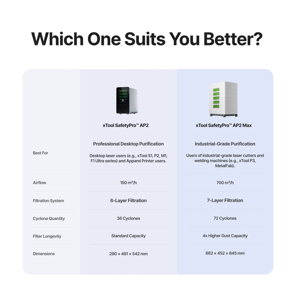 The air purifier is compatible with all major models of xTool laser engravers and cutters, including: